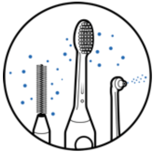 • エアフロー+超微細ウォータースプレーの噴射で、歯垢や着色汚れもすばやく除去できます。