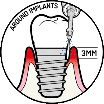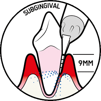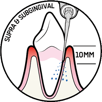 エアフローでは取り切れない深いポケットがある場合、 ペリオフローを使用しバイオフィルムを除去します。