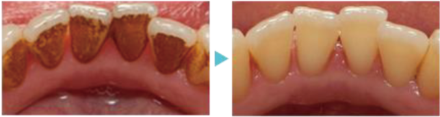 エアフロー後に歯石が残ってる場合、効果的に除去します。